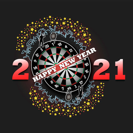 Happy new year 2021 and dartboard with football player and fans. Creative design pattern for greeting card, banner, poster, flyer, party invitation. Vector illustration FREE
